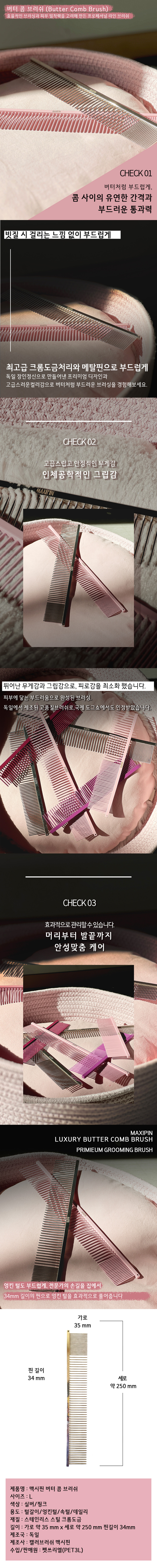 맥시핀 버터콤 브러쉬 라지 (실버/핑크)