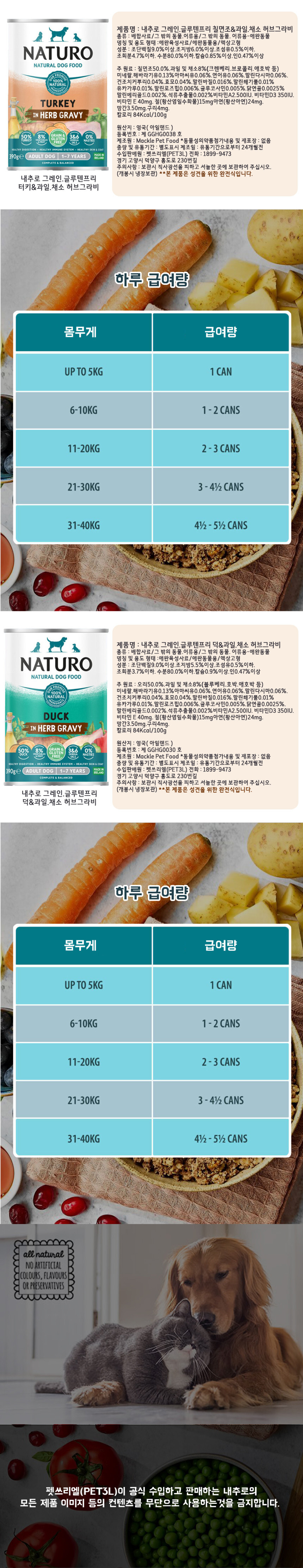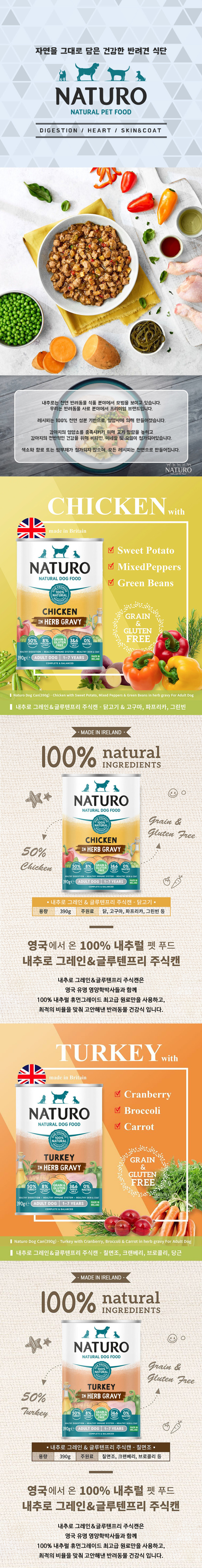 내추로 독 주식캔 허브 그레이비 그레인프리 오리 390g (12개입)