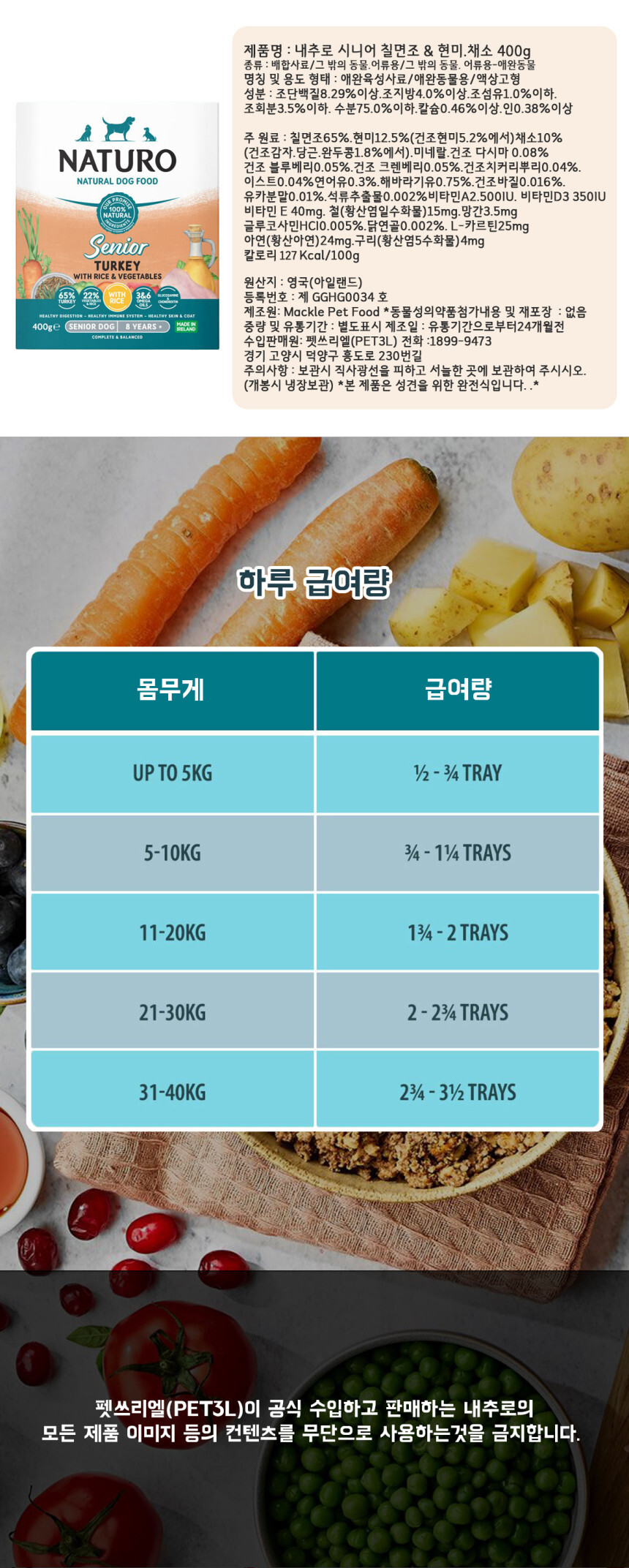 내추로 독 습식 트레이 시니어 칠면조 400g(7개입)